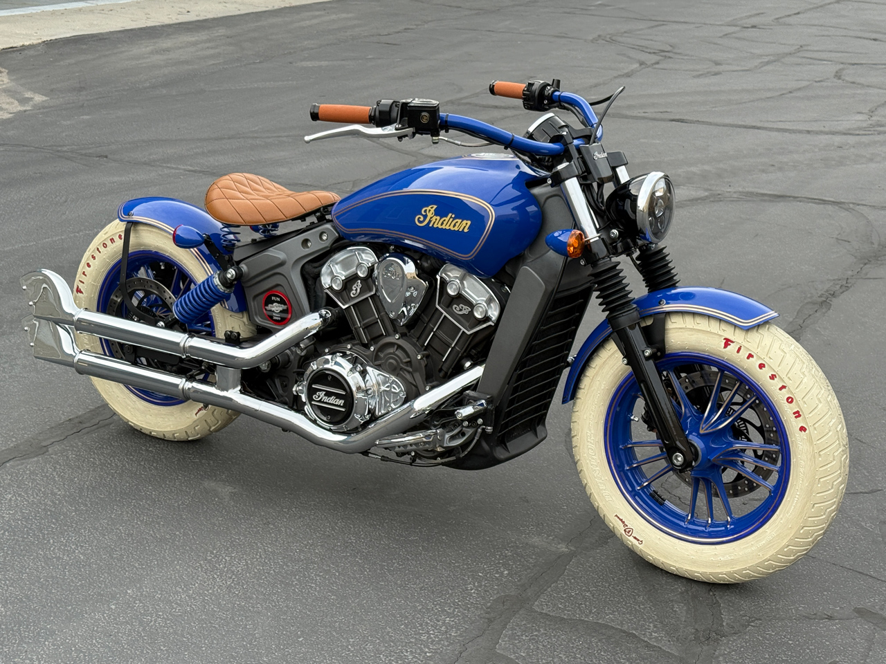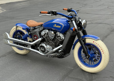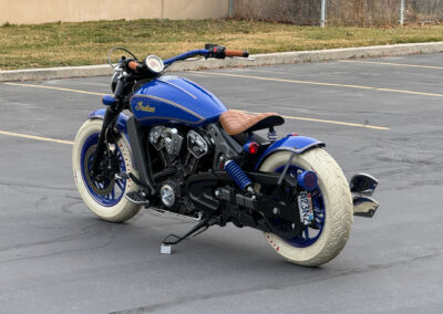 Indian Scouts 2015-2018 (except bobbers). What a fun and easy project! Our kits may fit the newer scouts. Does anyone have the specs on the newer Scouts? Our kits are straight bolt-ons with everything included for a super fast and fun custom build. There is no cutting or welding required, everything is done on the kickstand. Even though the lighting is complex on these bikes, we’ve made it super easy to do. The conversion is a blast and the finished bike is a knockout. Plus, the ride and seating position is fantastic. We put around 1,000 hours into our Scout designs. Nothing but the best for these little gems! We show our basic red scout. We went all out on our blue Scout! You can see all the variations of what your bike may be, it’s up to you. Either way you will have a totally unique, one-of-a -kind old school bobber. Smooth, powerful and one that will turn heads all day long!